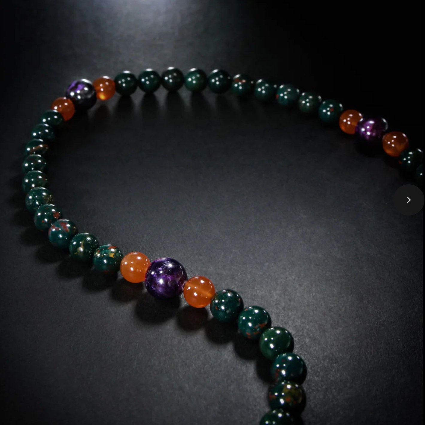 Next to quality, the most important factor in determining a gemstone’s therapeutic power is mass. Quality being equal, larger gems (8 mm or 10 mm) are more potent than smaller ones (4 mm or 6 mm), because they have more mass. If your neck is sensitive to weight, consider wearing necklaces with smaller gems.
