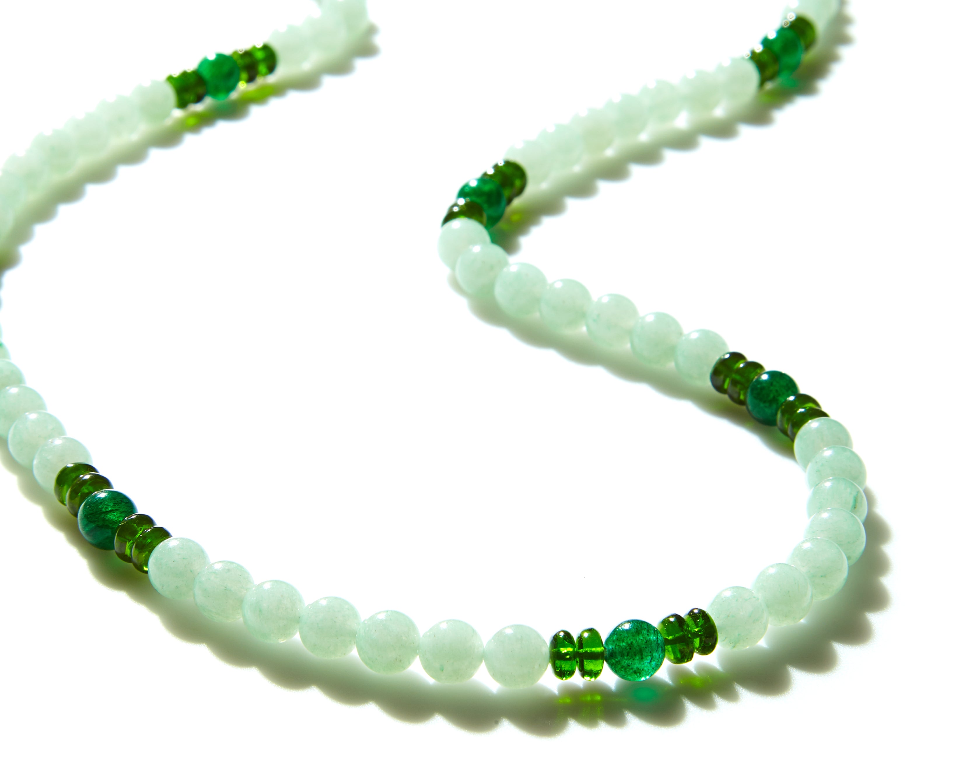 Next to quality, the most important factor in determining a gemstone’s therapeutic power is mass. Quality being equal, larger gems (8 mm or 10 mm) are more potent than smaller ones (4 mm or 6 mm), because they have more mass. If your neck is sensitive to weight, consider wearing necklaces with smaller gems.